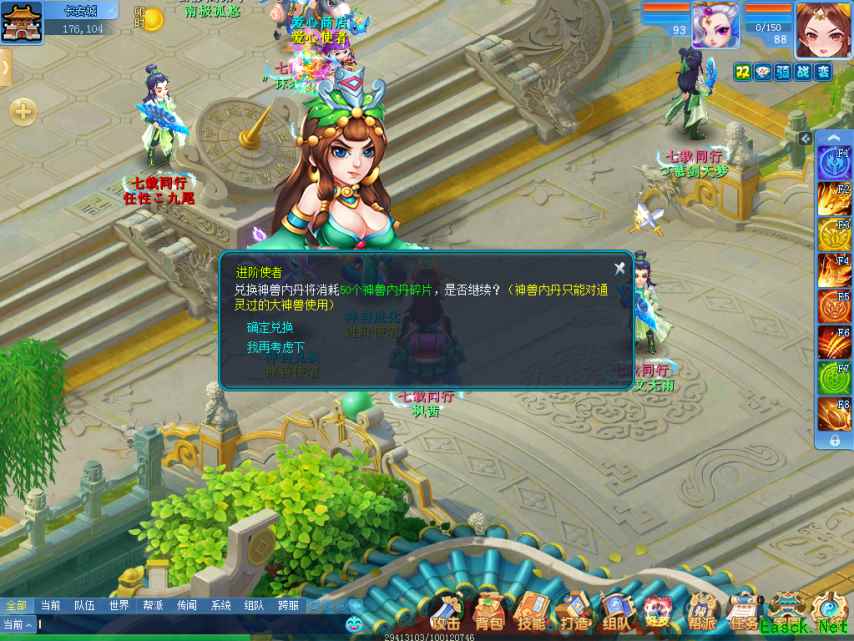 成为大神兽之后,它们还可以进行3次进阶,不过这3次进阶只增加资质,不增加技能。如果你的大神兽已经进阶3次了,可以用30个神兽之魂去进阶使者那兑换通灵丹,使用后技能数量+1。 【神兽内丹】