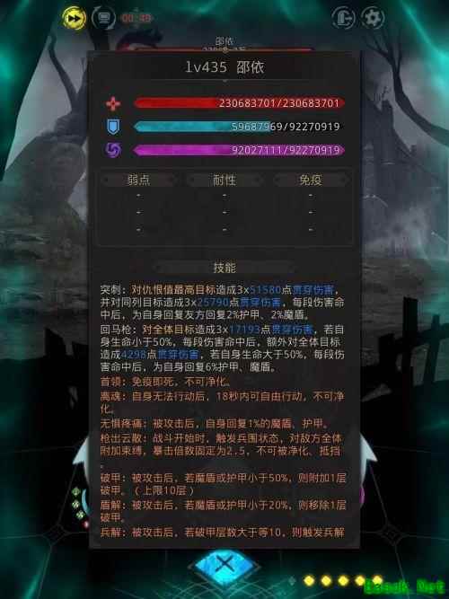 邵依 一、阵容词条 黎明330配置:暴武,装备60,暴击1,优先提升战吼伤害、首领伤害及盾甲生命伤害(战吼66,首领47,其余20),搭配巨神头手腿增加输出,忠诚挂坠减少7点抗性,符文选择狂热1.5,技能用新月,魔物带伤20+暴击2。 铸造者240:圣徒之锤(亦称工匠之锤),优先选择负面效果80、行动间隔与受回复相关词条,减回复效果方面必备巨神护腰与巨神铠甲(核心搭配),符文选择巫咒,仅开启护甲强化。此配置适合平民玩家,减伤且减回复,但需搭配C位输出补足伤害。若拥有地狱信使,可选用乌鸦、厄运或黎明吼来降低敌人抗性并提升伤害效果。 金芒刃240:豆剑,优先负面80,受回复,行动间隔,符文复苏50,技能护心镜消失时释放,涂毒之刃持续生效,异域关闭,魔物3*承伤6。 守门狗240为蛇蜥,优先负面词条80,行动间隔受回复影响,能源核心减少回能,符文激励20,技能仅开启捕博。 永望240:豆弓,优先行动间隔词条,受回复,符文选宁静,仅开启群奶(若条件允许优先选择战争)。 铸魔人240:豆杖优先行动间隔,受回复,符文牺牲13,技能默认。 链接240,首发工具人魔物,三个角色承受5点伤害,奶妈负责承伤与行动间隔,自行调整魔物饰品减伤(如永恒、邪瞳、龙之泪等带有减伤属性的饰品)。 食物三贯穿抗性,承受伤害后可食用增伤类食物。 三、其他方面:角色属性方面,C位洗练力量40,T和工具人洗血量35,奶妈血量20、攻击20,工具人血盾达到5万较稳妥,圣物尽量提升,魂匣需达到7阶。 四、打法: 血盾3.2Y需在70秒内完成击杀,战斗机制与夫人术士类似,但新增了兵解机制。想要打出暴击伤害,必须先将物防削减至20至50之间,并叠加10层伤害来打破兵解。此外,BOSS还有20%的闪避,攻击模式为单体和群体技能。 开局使用6豆召唤铸造者,首先释放吼技施加减伤与回血降低的负面效果。待控制与中毒效果叠加到位后,豆数也将回满。此时黎明与铸造者互相吼叫,建议在此阶段尝试一次暴击,将物防降至目标区间。若伤害不足,可由黎明再次吼技,通过普通攻击叠加层数,打破兵解。 目前角色配置方面,巨神2层26、金芒刃30、守门狗蛇蜥20、能源核心30,加上铸造者提供的25减回效果,邵依的血量几乎无法恢复。后续打法与普通BOSS类似,根据麻痹状态尝试两次暴击输出即可。全程需保持减回在100以上,并确保巨神减回不中断。后期面对此类BOSS,必须有一定绿装与魔物配置,否则将寸步难行。