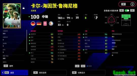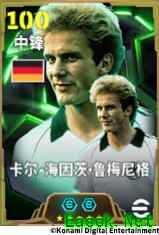 *该签约抽取达到一定次数后,将分别获取史诗概率提升、必得卡池不重复史诗签约、卡池自选史诗签约等奖励。获取卡池自选史诗签约后,累计抽取次数将重置为0次,史诗球员概率也将还原为初始概率; *该签约的累计抽取次数(及对应的奖励进度)可保留至S5赛季本签约史诗球员卡池更新后。 卡尔-海因茨·鲁梅尼格 他是足坛七十年代极具统治力的锋霸之一,也是让欧洲后卫望而生畏的“杀手卡尔”!脚下如绣花针般精湛,冲刺如铁骑破阵般迅猛,门前终结更似利刃一剑封喉,他就是技术全面的德国神锋——卡尔-海因茨·鲁梅尼格!