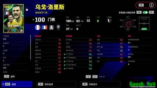 洛里斯增能属性为【守门 +2】,守门能力的全面提升让他在门线上屡献神扑! 96分的守门员意识让洛里斯有着出色的门前选位,他能及时出击化解险情!