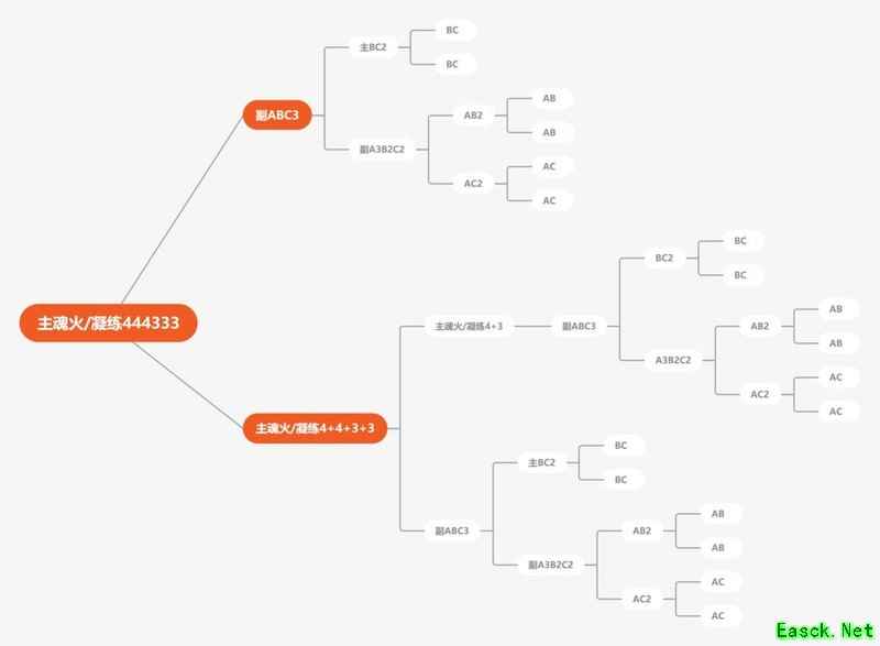 ----------------分割线----------------- 副火4+3公式: 此方法仅适用于将副火3级和主火3级合成4级的转移。 AB BC A C 各两组. =AB2 BC2 A2 C2 =(AB2+A2)+(BC2+C2) =A3B2+B2C3 =ABC3