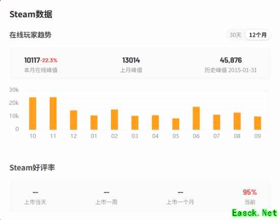 点击进入游民众评查看近期在线趋势>>> 作为对比《消光1》Steam在线峰值为45876人,于2015年1月31日达成。《消光2》Steam在线峰值为274983人,于2022年2月6日达成。