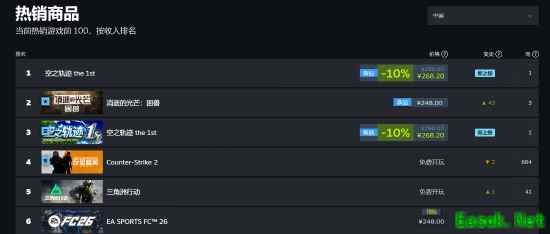 另外,《空之轨迹》的中韩文版本在Steam国区销量榜已经登顶。