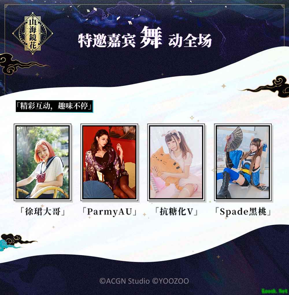 《山海镜花》桃螈和螈宝 【人气嘉宾 舞动全场】 本次《山海镜花》CP23展台邀请了国内知名舞团“阴阳寮”,以及ParmyAU、徐珺大哥、抗糖化V、黑桃四位知名舞见同台表演,活力无限舞动全场。更有国内知名coser小宠学姐、阿极、神奇贰狗、樱花病少女、星媛、璐璐、聪聪带你穿越山海异世,领略大荒之美,给龙子大人们奉上极致的视觉盛宴! 现场还将举行各种趣味游戏,玩家们可上台与嘉宾亲密互动,参与就送肉螈背包等各种人气周边。游戏玩得开心,拿奖拿到手软!