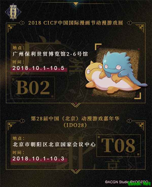 《山海镜花》漫展主视觉 【两地同展 嗨翻国庆】 国庆期间,《山海镜花》将同时参加“2018 CICF中国国际漫画节动漫游戏展×AGF玩出名堂游戏博览会”与“第28届中国(北京)动漫游戏嘉年华(I DO 28)”两场漫展。京粤两地同展,纵跨神州大陆,《山海镜花》势将卷起一阵国粹旋风,带领玩家们感受一个别样的大荒世界。
