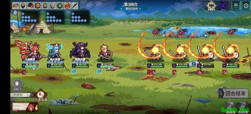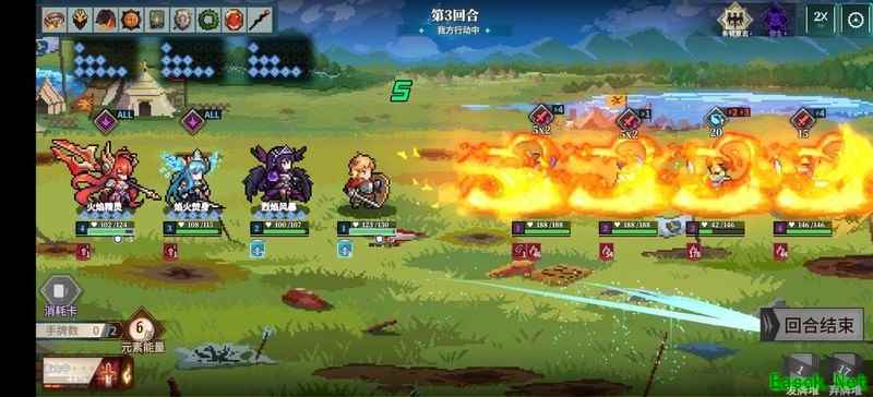 最终boss两回合叠加500+燃烧伤害,直接秒杀。