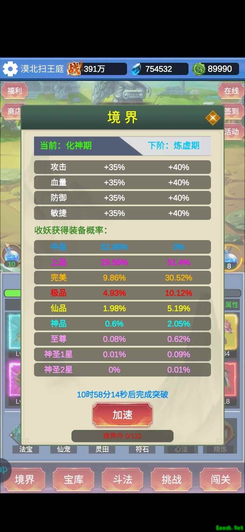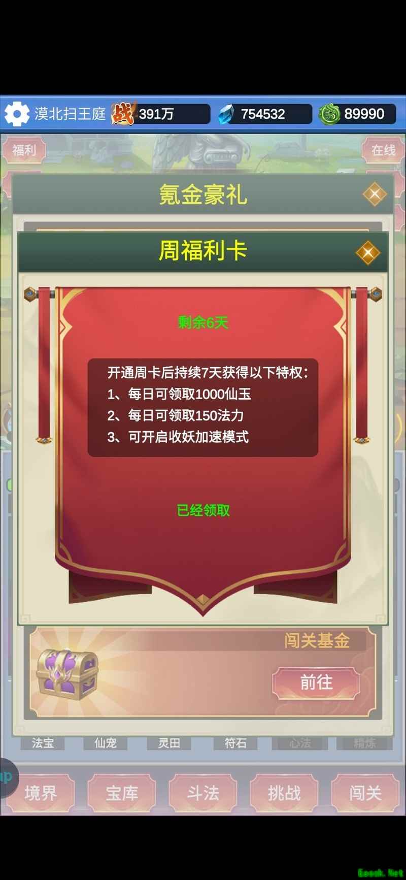全面开启升级共享,实时更新闯关怪物信息以换取法宝。