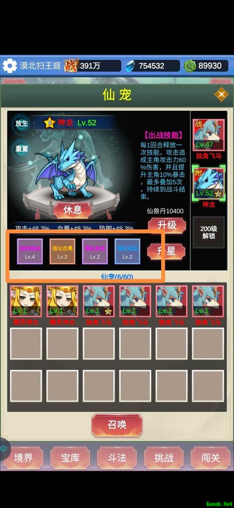仙兽首选小飞马,其次是神龙,最后选神女(注意技能是否符合需求),红色最佳,尽量有四个技能。