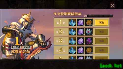 【活动时间】 12月21日~2022年1月4日 【冬至特别登录活动】 活动期间上线签到,可领金币、词缀石碎片以及活动道具冰雕纪念品等道具资源。