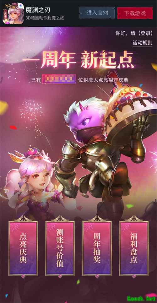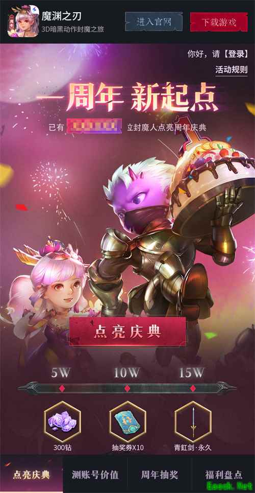 暗黑硬核APRG手游《魔渊之刃》即将迎来周年庆,周年庆专题今日启航!本次周年庆活动分为:【点亮庆典】、【测账号价值】、【周年抽奖】、【福利盘点】四大板块,准备了海量奖品回馈封魔人,快来一起薅官方羊毛吧!