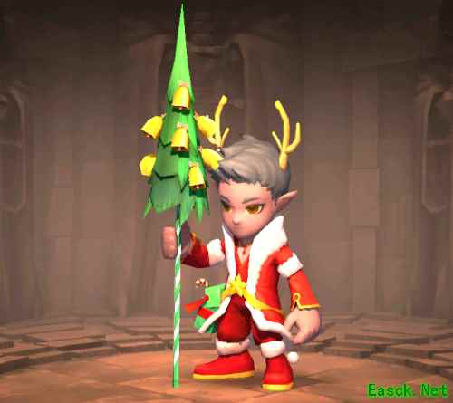 另外还有男款圣诞套装“麋鹿守护者”和武器时装“圣诞树”,“麋鹿守护者”可以直接使用时装币或钻石在商城兑换;“圣诞树”则需要使用一定数量的圣诞券在营地中央找NPC-圣诞小妹进行兑换。