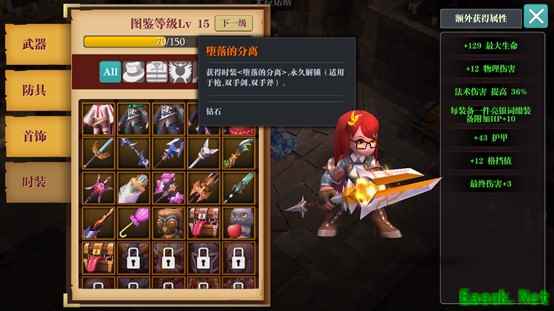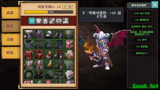 【收集养成一条线】 收集不同的装备和时装,不仅可以满足收集爱好而已。随着收集装备的增多,解锁更多图鉴标签的同时,还可以提升图鉴等级。图鉴等级越高,可以额外获得的属性越多。