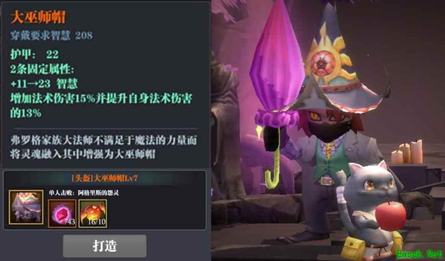 【限时装备打造】 铁匠大叔也给大家准备了惊喜礼物!使用恶魔糖果和史诗残魂可以限时打造Lv.7、Lv.10、Lv.12级“大巫师帽”和“堕落大领主头盔”。