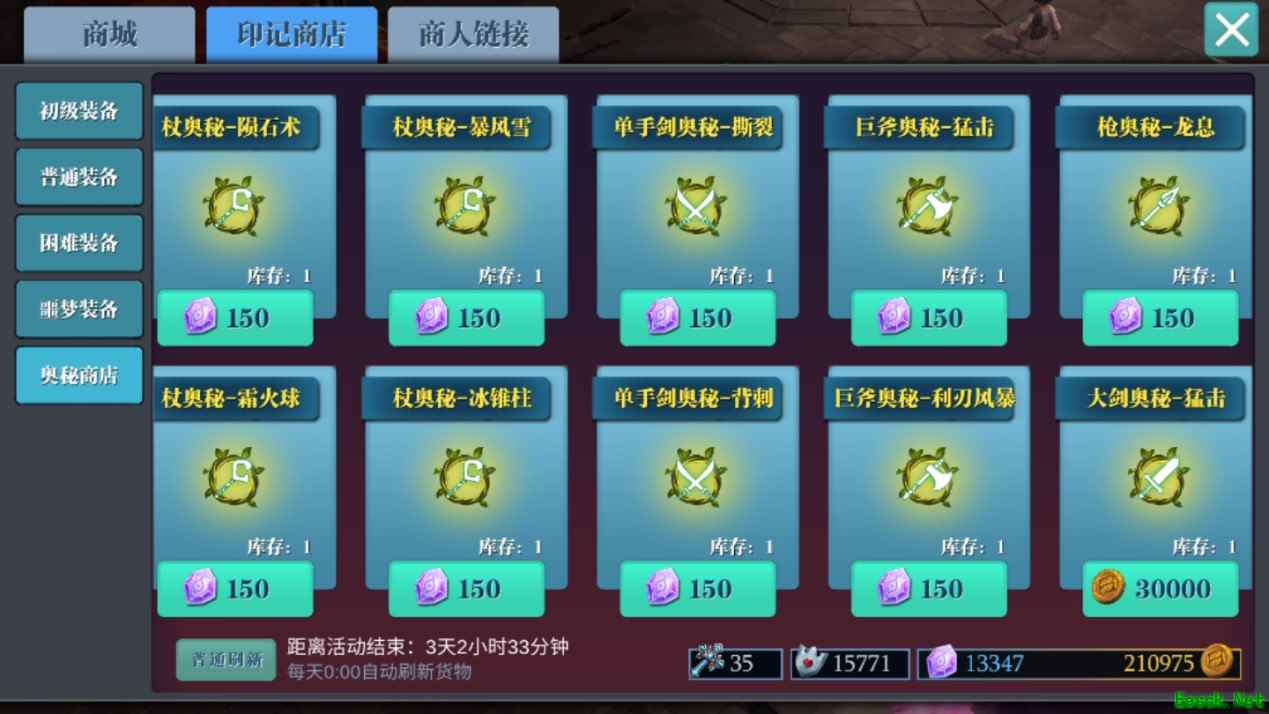 【奥秘商店】 本次版本更新中,将新增印记商店-奥秘商店。奥秘商店中会出售各种洗练武器技能的道具【技能奥秘】,使用【技能奥秘】可以直接洗出某个固定技能。