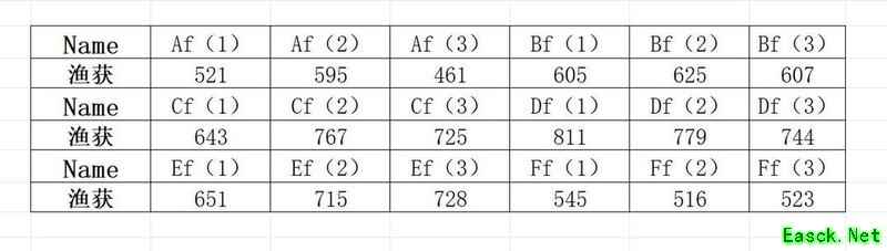 可以根据数据进行重组,实现各种分析目的。 遗憾的是,这次测试只有7天时间,等我准备开始时已到第三天,时间太紧张了。 因此条件不够完善,但依旧具备一定分析意义。 本次测试将在第二张地图进行。 在各竿等级均为6级、单次自动钓鱼可钓30条鱼的前提下,完成了三项测试。 项目如下: 项目A:测试6级普通竿搭配不同鱼钩的捕鱼效果。 测试普通钩与6级各竿搭配的渔获效果。 项目F:测试爆炸钩搭配6级竿组合的捕鱼效果。 数据如下: 项目A