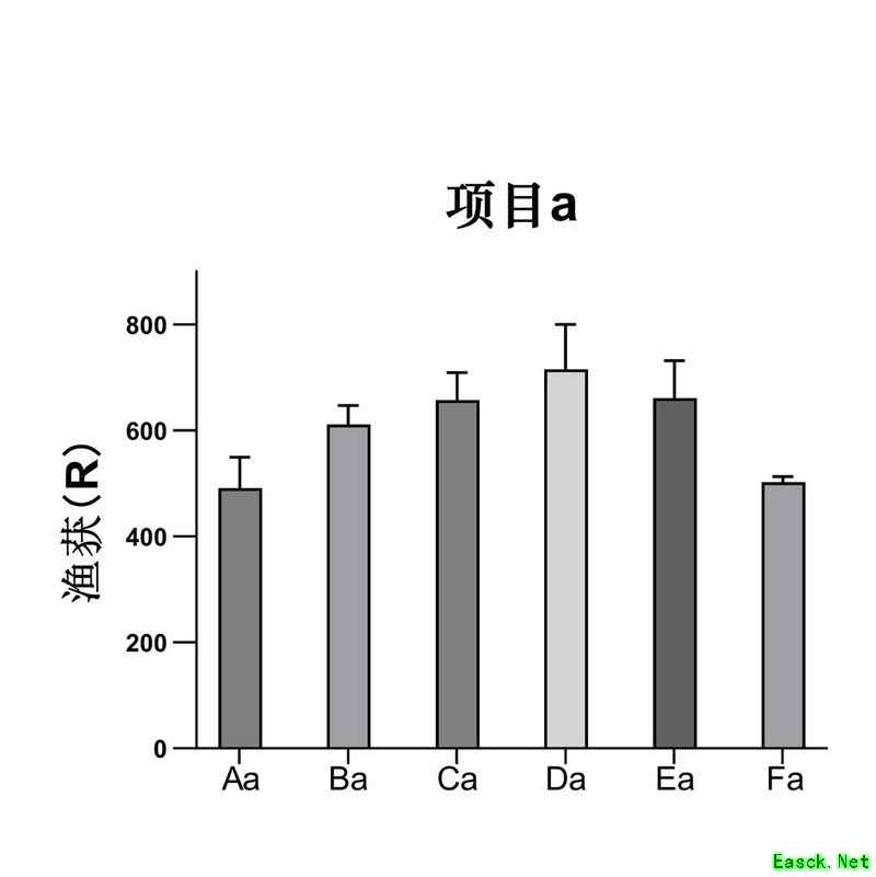 从图表可见(简要分析) 海钓竿搭配普通钩,各竿平均收益最高,上限稳定。 二、看多图 从整体看项目A和a的情况 显然,鱼竿比鱼钩对捕鱼效果提升更大。 综合项目a与项目f的情况来看