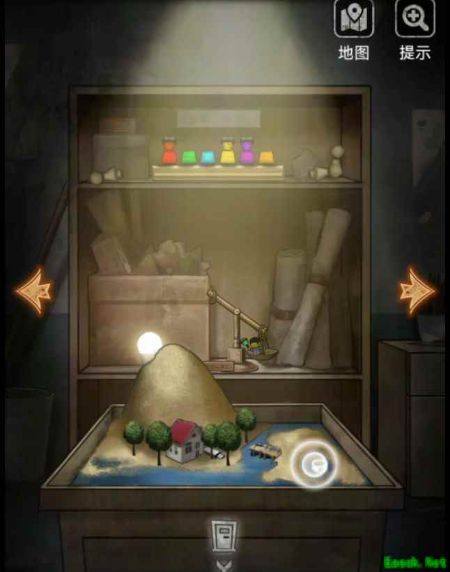 桌上有一个七彩数字密码盒,颜色与我们刚装上的小人一致。若按小人从高到低的颜色顺序黄紫红蓝橙绿对应,密码为364125;若从小人从低到高排序,则密码为413652。输入正确密码后即可打开盒子,获得灯罩。