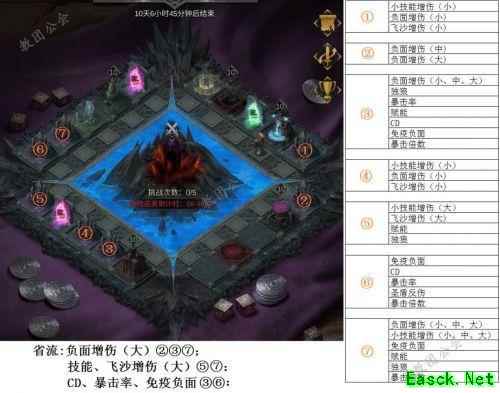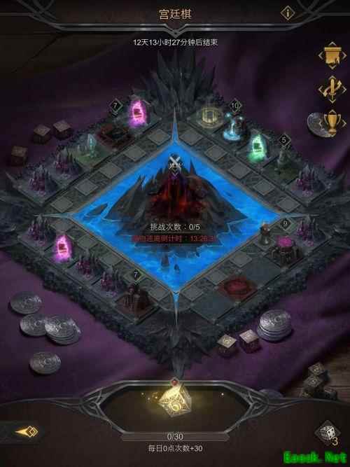 【宫延棋】 宫廷棋玩法类似童年的大富翁游戏,通过掷骰子决定步数,每日有30次机会,可建设5种资源建筑,每日24点发放相应资源。左侧蓝绿色石碑可获取许愿骰子,能自定掷出的点数,便于精准规划行进路线。 每天有5次挑战BOSS的机会,通过紫色祭坛可解锁不同技能,自由组合搭配,发挥最大伤害,冲击排行榜赢取当期奖励。 转发教团公会及剑花秋莲光出匣整理图。 宫廷斩击打法简介:46剑豪剑华3汤70亿