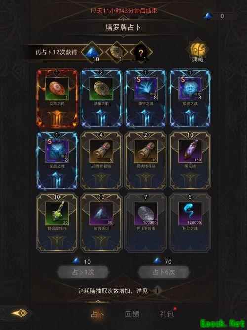 【塔罗牌】 蓝沙活动又称塔罗牌活动,每隔两到三个月开启一次,是平民玩家获取典藏皮肤的主要方式。活动中可通过法皇之轮和女帝之轮兑换不同皮肤,且这两个道具在活动期间不会重置,可保留至下一期继续使用。 每次抽取塔罗牌都会增加蓝沙消耗,普通玩家建议购买400加800玉的蓝沙礼包,并且每天登录领取30点免费蓝沙。只有每天都领取,才能拿到第二轮的所有回馈奖励,缺一天都无法达成全勤要求。 新号参与塔罗牌活动非常划算,无需顾虑其他,银币会大量获得,前期不会缺银币,运气好还能获得S级魔物。 需要充值的玩家可参考该帖的充值攻略。