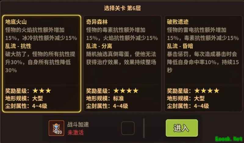 封尘本除了固定的关底BOSS外,基本可以自由选择地图。整体来看,下面两排磁条的关卡,击败精英怪基本能100%掉落粉色或红色装备,不过难度会相对高一些;而只有一排磁条的地图,则掉落橙装的概率较高。普通小怪即使成群出现,掉落物品的概率也较低。层数高低主要在磁条数量上有区别,掉落内容基本一致。如果不追求排名,只想轻松凑齐装备,可以利用高掉落关卡刷取较高磁条的粉装,随后回到1层反复刷取当前等级的毕业装,毕竟精英怪几乎必掉装备,刷一套成型装备并不难。此外,封尘本内掉落的宠物装备和宝石中,3级品质的概率似乎比密五更高。地图尽量选择大型,遇到背包客的概率非常大,刷一次基本可以带回一个背包,收益非常可观。如果缺钢票,也可以专门刷一磁条的地图。另外,战斗加速功能每使用一次会消耗一层次数。