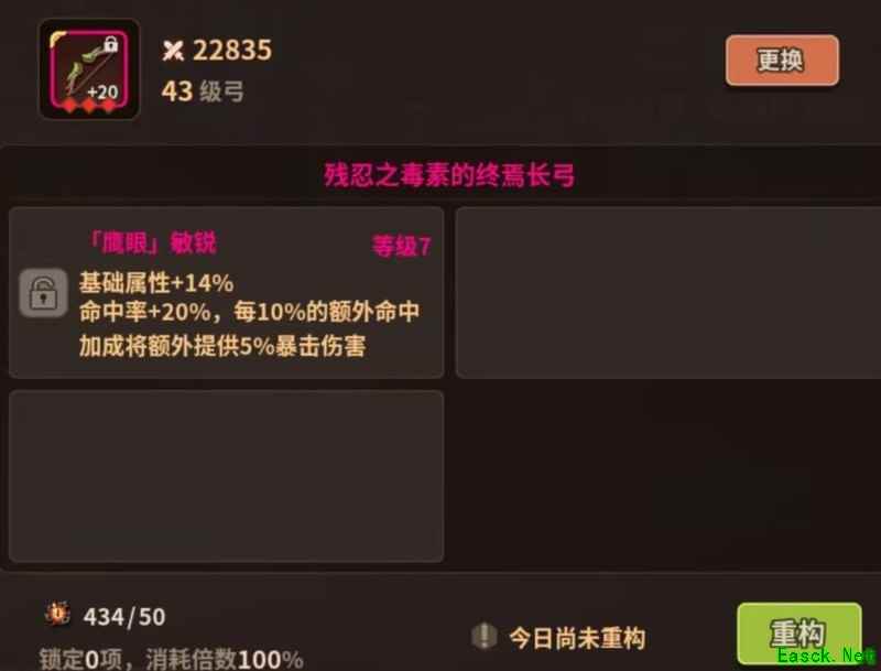 重构其实就是给装备洗练属性,根据你挑战的层数掉落1到3条磁条,每件装备最多能有3条,这个数量已经相当可观了。而且小怪掉落的数据也很惊人,具体数值与层数相关,如果不是特别喜欢或者运气特别好,一直刷一直洗真的很难坚持下去。