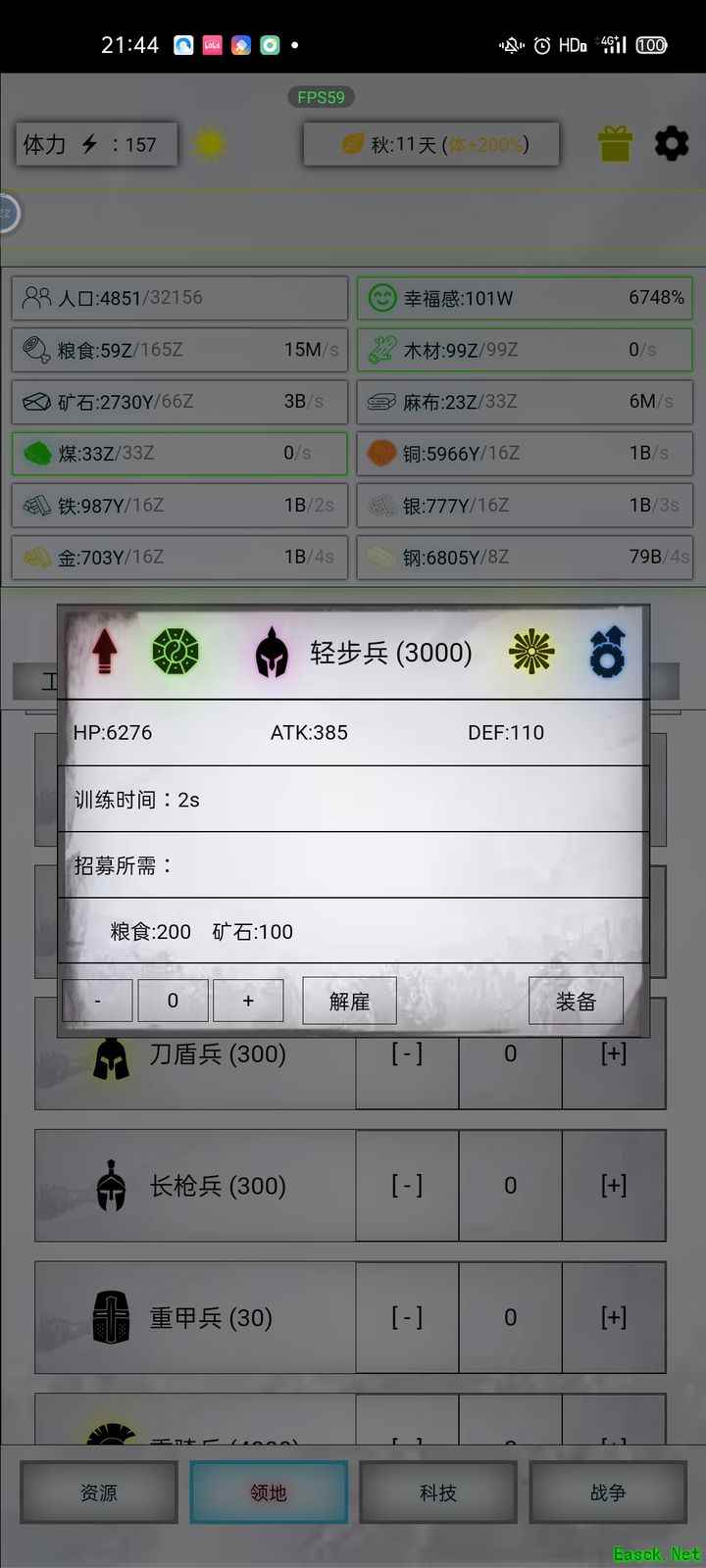 放置时代中挑战6000+沉默神一直是高难度战斗的代表,本文分享一套低配打法思路,利用合理配置与手动操作,轻松过关。 最近看了些帖子,加上闲来无事,便琢磨了一下沉默(大爹)的打法。 我的配置与59沉默战损情况(见图)。 1999规模的挑战主要有两点:一是在沉默神死亡前将其生命值降至999以下,二是必须完全破防,实际需要突破每个沉默神约2万的防御值。 其实思路是有的,但到了后期练度太高,很容易变成靠大量兵种和工具人强行把沉默队第一排放倒。所以建议自己手动操作,就算开500倍速手打也很快,毕竟没人愿意硬碰硬打沉默大爹。 具体出站顺序如下:精50 1宇航 末代装备无天命,佩戴项链可增强电磁血量与闪避能力。 750步兵(无王权,石风),封锁敌方首排神沉默技能。 147重骑(无武器,弑神号角),攻击提升14.4倍。 200名无武器、穿魔术服的士兵,提升破甲率,专门针对沉默神的防御。 900电磁,步枪能源甲配置完成。