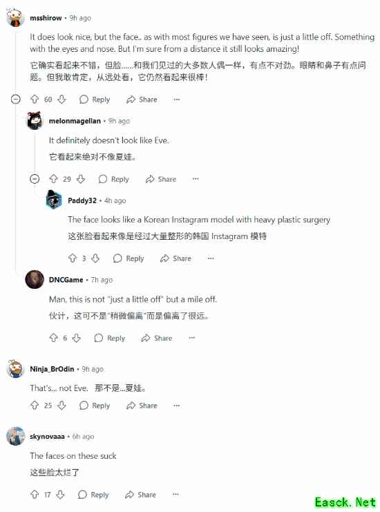 玩家晒《剑星》伊芙手办被吐槽脸崩了:纯整容网红脸