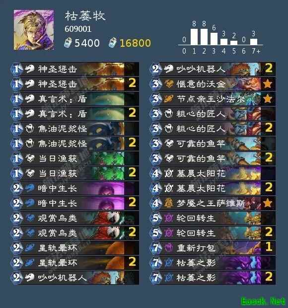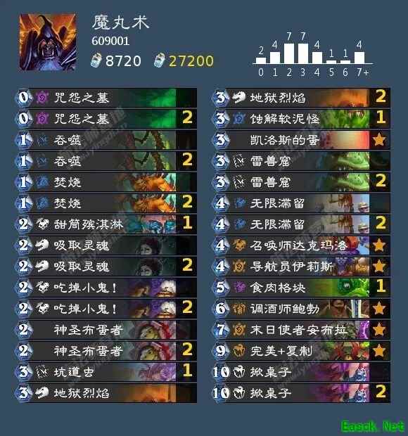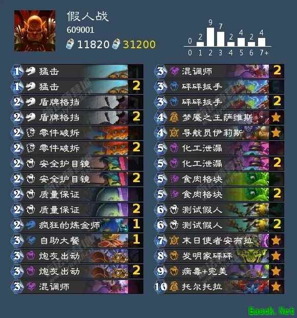 平衡补丁过后,对环境的影响很小,三座大山依然是节奏贼、节奏DK和任务术。蛋术20/20加了嘲讽算加强,现在能玩,不过这卡组玩起来容易被抢死。