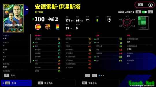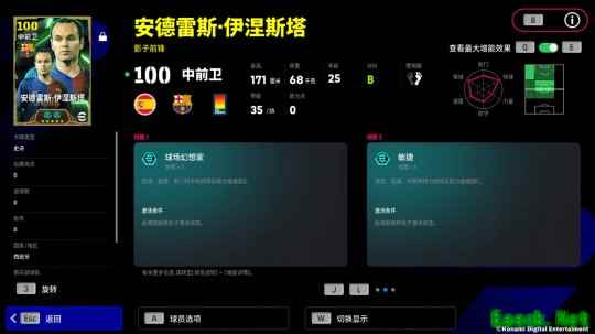 他是夜幕下一招制敌的斗牛士军团英雄,也是巴塞罗那无可替代的中场大脑!他的油炸丸子举重若轻优雅至极,他的直塞化繁为简撕裂防线,他无与伦比的视野和极致的传控更是掌控着球队节奏!从拉玛西亚青训营走出的伊涅斯塔,身披红蓝战袍帮助球队缔造了震撼欧洲的 “梦三王朝”,用十六年光阴成为红蓝传奇! 08-09赛季,伊涅斯塔化身巴萨的中场节拍器!他用广阔的视野和丝滑的传控技术掌控着球队的中场节奏。最终帮助红蓝军团包揽了09年国内外冠军,成为史无前例的“六冠王”! *增能后球员总评可达100分,上阵最大总评可达104分 伊涅斯塔的增能属性为【球场幻想家 +2】,超高的盘控帮助小白掌控中场! “小白”自带特殊技能【无定型传球】,即使面对多人包夹,他也能在摆脱后第一时间送出精准的传球,完成助攻! *详情活动规则请以游戏内活动公告为准