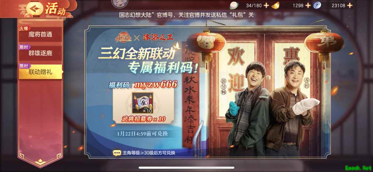 《三国志幻想大陆》梦幻联动《沐浴之王》,电影票送不停!