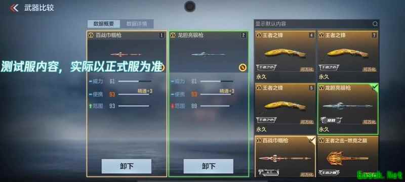 百战巾帼枪性能解析 聊完百战巾帼枪的外观后,我们来看看它的性能如何。作为英雄级长枪系列的武器,它自然是以赵子龙(常胜套装)的龙胆亮银枪为对标对象。