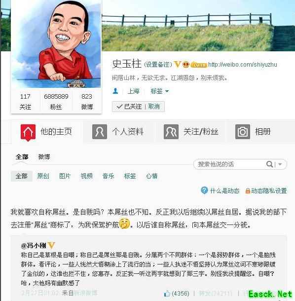 2013年2月28日,为了宣传“屌丝Online”(也就是《仙侠世界》)。史玉柱与著名导演冯小刚在微博上展开了一场关于“屌丝”的隔空骂战。 冯小刚连发两条微博对“屌丝”进行了言辞激烈的抨击,称之为脑残群体。而史玉柱则予以回击“我就喜欢自称屌丝。怎么滴?”