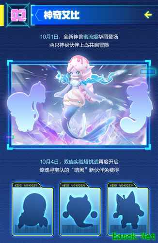 10月1日,全新神兽蜜流姬华丽登场!10月4日,双旋实验塔挑战再度开启,惊魂寻宝队的“暗黑”新伙伴免费得!