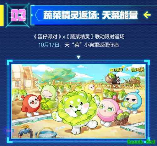 10月17日,《蔬菜精灵》联动返场,天“菜”小狗注入蛋仔能量!