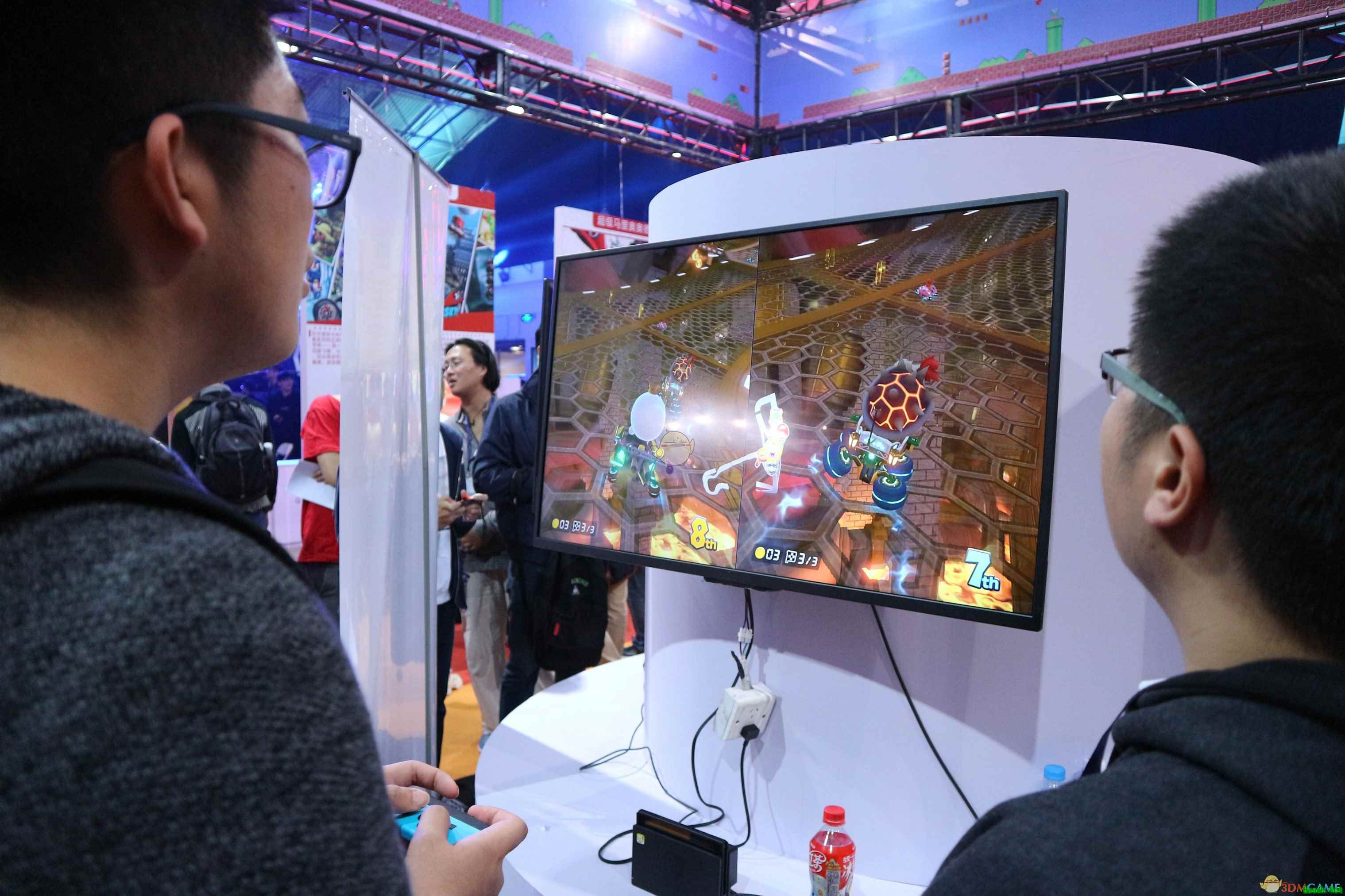 超大手柄,操控起来不简单 另外一个镇展大作就是《超级马里奥:奥德赛》了,它藏在UCG的展区当中。笔者算不上任天堂的铁粉,但游戏启蒙就是从FC游戏开始,之后的成长历程中也接触了很多任天堂平台的优秀作品,玩这些作品时真的能不自觉的笑出来,这也是任天堂的魅力之一吧。而UCG展区就像是超马的发展史,从FC到NS主机一应俱全,玩家可以体验到各平台上的超马作品。这里的玩家非常多,笔者甚至发现了带着父母一起来的,可以看到这位母亲和自己的儿子一起玩着马车,开心的像个孩子。