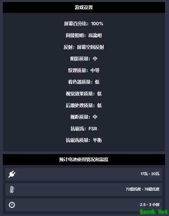 网站点评为: ·一些游戏内文字较小,可能难以阅读。 ·此游戏需要手动配置图形设置才能在 Steam Deck 上正常运行。 ·使用默认控制器配置时,所有功能均可访问。 ·该游戏显示 Steam Deck 控制器图标。 ·此游戏在 Deck 上不默认使用外部蓝牙/USB 控制器,可能需要通过快速访问菜单手动切换活动控制器。 除此之外,专门调整SteamDeck的网站SteamDeckHQ还给出了游玩的具体设置调整,虽然并不能够和高端PC和其他掌机相比,但也依旧能带来不错的体验。