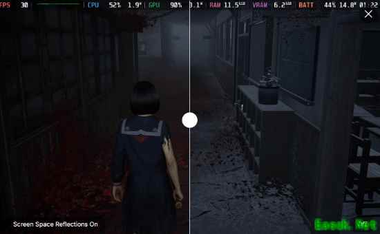 尽管部分地区有些掉帧,但最差也可以维持在25帧,其他情况下基本保持在30帧以上,有些地段加载可以在40帧,但游玩过程里掉帧的情况比较多。 此外他们在调试游戏设置时,意外发现这款游戏最好开启SSR,也就是屏幕空间反射,这跟游戏的色调有很大关联。