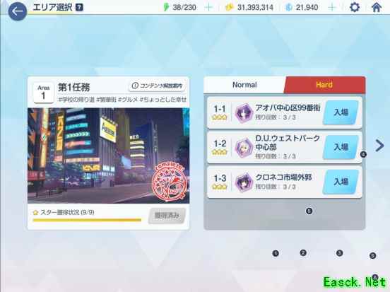困难模式下类似战争迷雾,视野仅限前方一格,可通过触发无人机区域扩展视野。 困难图中加入了含50青辉石的礼物盒作为特殊奖励,仅限一次,通常位于偏僻地块。在前期关卡中,礼物盒的位置可能与三星评价或挑战任务的步数要求冲突,意味着需要重复通关两次才能兼顾奖励与任务目标。虽然略显麻烦,但为了50青辉石也只能接受。从第12图开始,这种情况才得以改善,可一次性完成任务与奖励获取。 在推进主线过程中,即便困难关卡尚未完成或每章节最后一关未获得三星,也不会影响解锁后续章节。前期可以优先开启新功能、升级咖啡厅,等到遇到难以通过的关卡时,再回头清理之前未完成的内容。这种方式个人比较推荐,虽然有强迫症的玩家可能会觉得不太舒服,但整体节奏会更轻松一些,具体还是要根据个人习惯来调整。 若你挑战主章节地图(不含支线与教程关卡),并在普通及困难模式下达成全三星与全成就通关,总共可获得约1160青辉石,接近一次十连抽的资源,努力刷图吧! 二、故事 这里没什么可说的,只是个看剧情的地方。