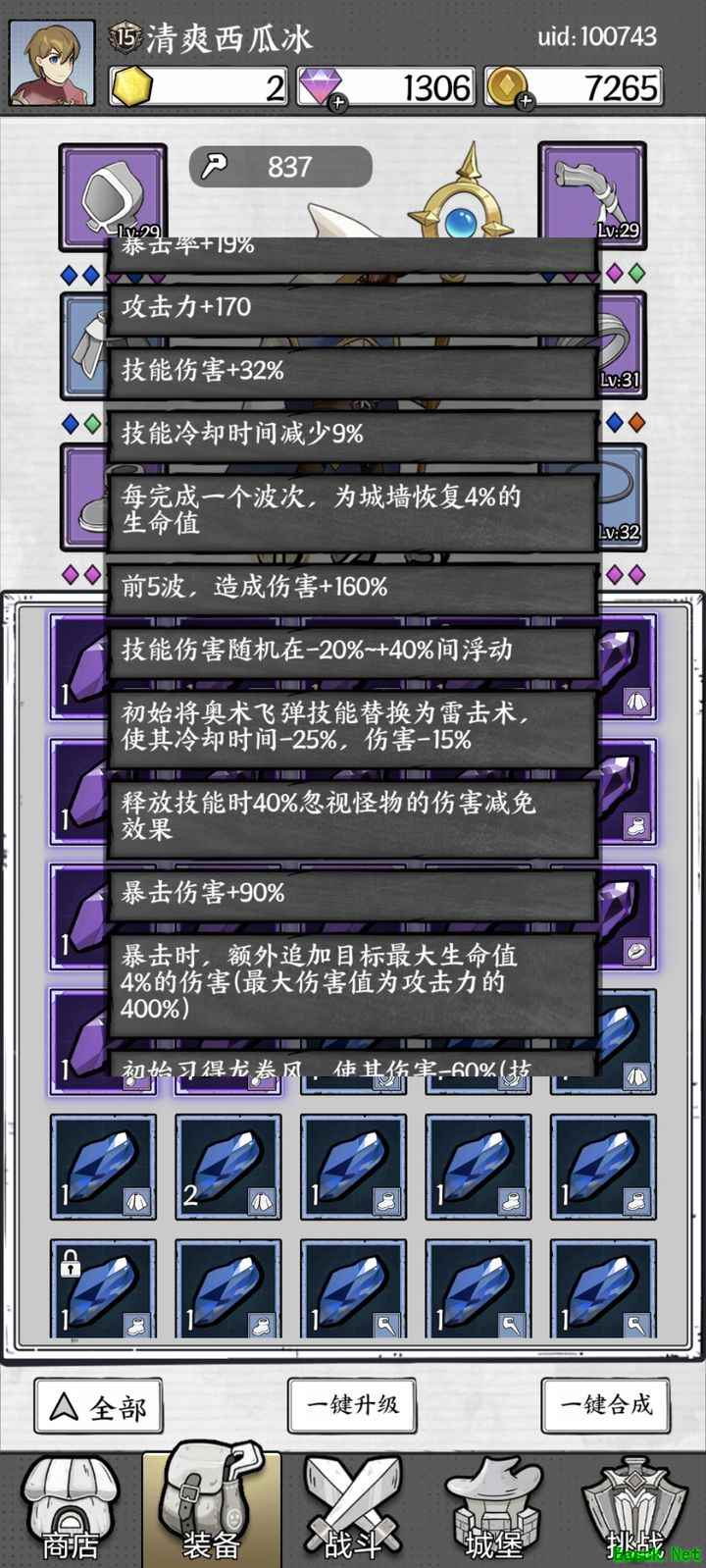 刚开始接触这款游戏的第九天,作为一名没有购买任何额外礼包的玩家,我至今还没有刷到过任何一枚橙色宝石,唯一的一枚还是通过长时间积累材料合成获得的,目前装备几乎全是蓝色和紫色宝石。不过,我发现宝石的实际效果并不完全取决于颜色,搭配得当的情况下,绿色有时比紫色更强,紫色也可能优于红色,关键在于理解与组合。 我常用的技能组合是龙卷风、聚焦和榴弹,主要依靠暴击、爆伤和攻击力类型的宝石输出。暴击状态下伤害差距非常明显,不暴击时则显得乏力。无论采用何种流派,暴击与爆伤宝石始终具备极高的性价比。攻击力宝石在前期表现尤为亮眼,直到中后期(大约25关以后)才逐渐乏力。因此,在尚未获得核心机制宝石前,优先选择暴击、爆伤或攻击力类型的宝石,哪怕是绿色也非常实用,我甚至很多时候都宁愿用绿色也不换上紫色。 在未明确机制宝石之前,推荐优先选择当前版本强势技能(如聚焦、龙卷风、榴弹)。机制类宝石主要集中在武器、项链和戒指上,洗练时可优先处理这三个部位。紫色洗练性价比高,不必等到橙色才开始重视。希望我的经验能对你有所帮助,祝大家顺利通关!