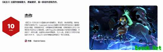 总评: 《哈迪斯2》几乎在各个方面都比前作规模更大、更出色、更具有挑战性,堪称续作制作的典范!Supergiant Games的最新力作拥有动作游戏史上最精彩的战斗场面,其充满讽刺意味的对话、对希腊神话的原创刻画、优秀的配乐以及令人惊艳的艺术指导令人印象深刻。 这款Roguelike游戏不仅保留了系列前作的精髓,还在其基础上添加了一系列新元素,使游戏玩法更具策略性,更加引人入胜。在独立大作频出的2025年,《哈迪斯2》绝对是年度最佳游戏的又一有力竞争者。