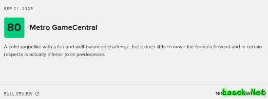 Metro GameCentral:80分 评测平台:Switch 2 点击查看详细评测>>> 这是一款扎实的类 rogue 游戏,兼具趣味性与平衡度良好的挑战;但它在突破玩法框架方面几乎毫无作为,甚至在某些方面还不及前作。