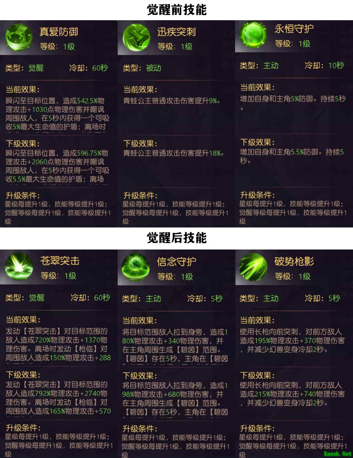 搭配觉醒技能『苍翠突击』、『破势枪影』造成AOE暴击伤害!能聚怪、能输出、能抗伤、能辅助的觉醒青蛙公主,是恶战中最理想的搭档!