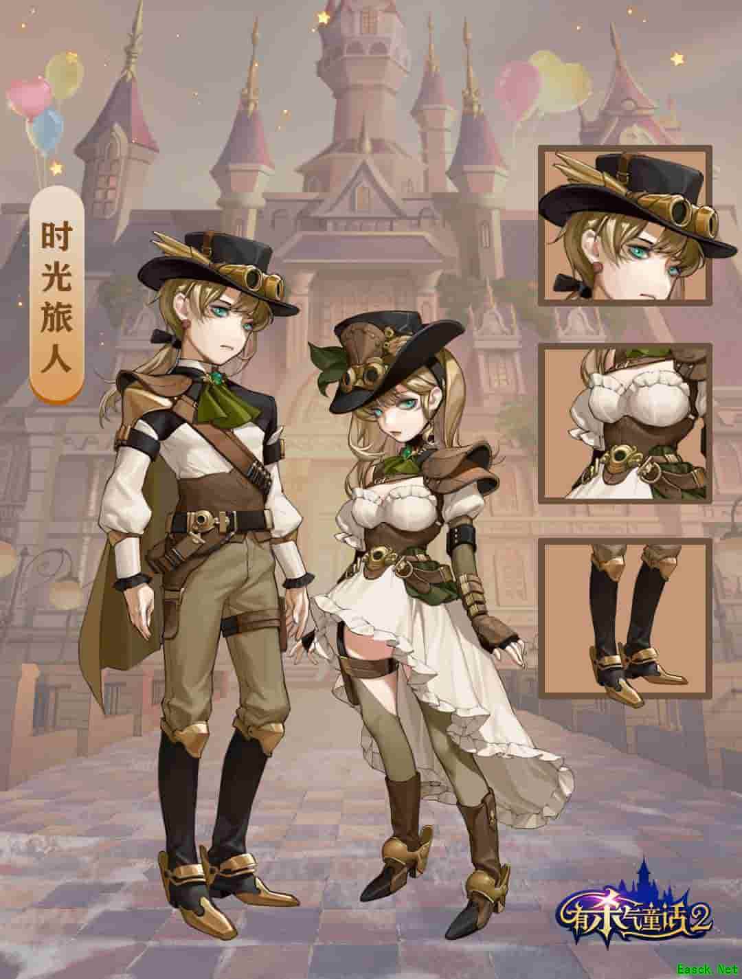 愚人节活动上线 活动限定时装上线!摇身一变“奥兹旅人” 【时光旅人】 “时光旅人”蒸汽朋克套装整体以棕褐色为主,黑白为辅,加之绿色领结点缀,怀旧复古感十足!男性的礼帽搭配护目镜,全身紧束感突显得身姿提拔,添加皮革元素的长靴,整体金属和古朴感满满!女性前短后长的荷叶边礼服加之金属束腰带,又酷又飒!