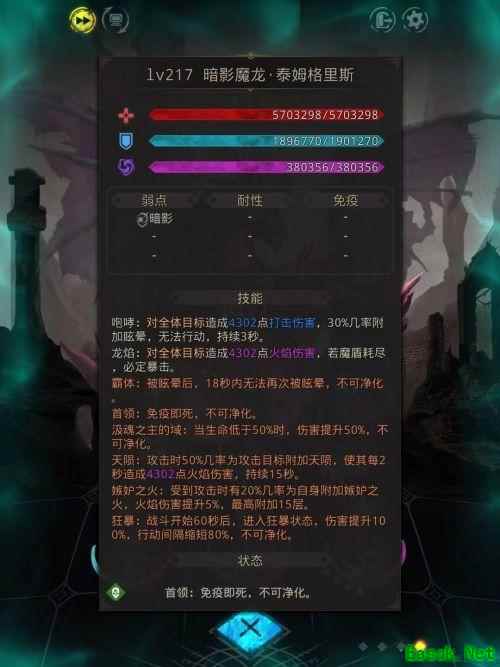地下城堡3:魂之诗中,秘境探险一直是玩家挑战的核心内容之一。本文由wiki团成员_0079原创,带你深入汲魂之主的秘境,详解地图通关技巧、隐藏路线、关键道具获取及高难度BOSS战策略,助你高效通关,掌握秘境全貌。 图文攻略1.0版 回秘境寻找雅尔贝德,触发剧情后使用源之秘境石进入图16。 进入地图后,优先清理所有可攻击的小图。荧光洞窟的减速怪对刮痧队伍较为不利,建议多尝试几次,利用厄运或奶妈进行净化。对于挡路的巨神兵,携带工匠之锤的铸造者可释放麻痹技能,晨星守林人则能无缝衔接控制,整体难度不高。 钟乳石林有三条隐藏路径:右右前、左前左、右左前。击败敌人后,将弯曲的脊骨交给吊死鬼,点亮蜡烛即可。 先采集晶岩矿脉与珊瑚礁群,取得两本日记,随后前往幽影烛台右下方的闪光点获取优胜者指环,用它为残破尸骸点燃第二支蜡烛。 完成漩涡谜团的虚空之境任务,与被贯穿的尸骸对话,点亮第三支蜡烛,最后前往幽影烛台领取奖励。 石缝裂隙中的两个石人是整张图中除了魔龙之外最难对付的敌人,如果暂时打不过可以先跳过,等后续再回来挑战。这场战斗对操作有一定要求,成功击败后可以获得神族之血,提前让千面达到240级。 开局时,千面和晨星应优先攻击右侧的蓝色石头人。战斗流程大致为:晕眩 → 5次捆绑 → 5次捆绑(此时目标会脱控)→ 再次晕眩。在第二次脱控阶段,全体成员会受到蓝石头人的伤害,此时必须保证不会被秒杀。工具人最好有4000+血量,并尽量堆高物理和魔法护盾,装备也可根据情况微调。 此外,输出要适度控制,不能过高,否则在晨星第二次晕眩前,如果蓝石头人半血以下并完成行动条攻击,伤害会提升1.5倍,极易导致工具人团灭。通常蓝石头人在晨星第二次晕和守林人第三次5捆之间击杀,剩下的左侧石头人就好处理多了。 进入6人阶段后可适当放松,但仍要注意,当其半血以下时必须保持控制,否则1.5倍伤害下晨星可能一轮攻击就被击杀。 装备选择方面,晨星建议带龙之泪减伤与救赎符文,千面使用群攻装备,搭配1暴击属性,阵亡时提供60%增伤,2怪状态下额外25%增伤等效果。多尝试几次,熟悉机制后更容易通关。 尽量完成外传、海岛图、暗黑螺旋、副本和挑战邀约中的可挑战内容,提升等级并打通更多关卡。暗影魔龙是继第十图守门人之后较难的BOSS,相比后续的古老飞龙和拉面师傅,它的难度明显更高。 在挑战暗影魔龙前,先通关破碎之境获取宁静,这样练度可高效击败火精灵以获取最大资源,打两次后暂停,保留虫子用于后续升级狂热。 暗影魔龙泰姆格里斯降临世间 一、阵容词条 千面210装备配置:武器选择暴击1属性,优先推荐风轻、图穷或巨蟒,搭配巨神之手,尽量提升首领伤害、盾甲穿透、生命伤害以及前后排伤害(总和40+38)。佩戴忠诚挂坠以降低目标7%抗性,符文选择狂热1.0,技能保持默认设置,确保魔物伤害达到20%以上。建议准备约200瓶药水用于洗装备和武器词条,至少洗出一把暴击1的武器。若后续组建刮痧队伍,可考虑加入亡命,但整体不推荐。 晨星141:冰剑,装备20,龙之泪减伤,词条优先负面80,受回复,行动间隔,技能圣盾消失施放,推进施放,符文救赎 守林人130级搭配:碎心弓,装备选择救赎外套与永恒之戒,词条侧重行动间隔与受回复效果,技能仅开启捆绑射击,符文使用宁静。关键点一:行动间隔控制在1.5秒;关键点二:根据暗抗免伤装备数量调整配置。 战争150:轻语装备20,优先行动间隔词条,受回复与救赎外套,技能鼓舞99持续释放,强攻牺牲符文 佣兵130优先负面词条80,受回复影响,行动间隔较长,技能仅弱点标记。 铸魔人130推荐使用豆杖,优先行动间隔与回复效果,技能以默认配置为主。 二、食物:3褐汤 三、其他注意事项:链接选择121+(121与130效果相同,均为秒杀,避免使用141链接,魂升千面240收益更高,氪金玩家可根据情况调整)。品格120级开启,千面洗练品格24,晨星、守林人、铸魔人生命品格达到20,圣物尽量提升。工具人必备野性魔物,行动间隔设为3,未标注的技能全部关闭。 四、打法: 这个Boss具备高额群体伤害、强力控制和持续负面效果,对低练度玩家来说几乎无法应对,只能寄希望于不被关键技能命中,比如天损和眩晕。守林人卡牌的颜色影响不大,重点在于装备了多少件具备暗抗和免伤效果的装备。队伍速度设定在1.5,晨星需要将负面效果控制在80以内,尽量在控制最大化的同时提升输出。 对于高练度或氪金较多的玩家,可以尝试使用千面和晨光/永望相互吼叫来实现净化效果,同时配备多名治疗角色,保证续航和净化能力,这样就能慢慢消耗Boss。 开局为2豆,千面与晨星先手互吼,守林人紧接着使用5次捆绑控制。从一开始就全力输出,因为Boss不会立即行动。后续主要看运气,若未被天损和眩晕命中,其他三人基本阵亡,等到第3颗豆时,千面大招状态一结束立刻再次吼叫。只要守林人在第二次捆绑时没有死亡(1.5速度提升了第二次捆绑成功率),就有希望继续战斗。晨星接续控制,守林人发动第三次5捆,注意千面每次大招结束后立刻吼叫,确保输出最大化。整个战斗的关键在于千面的暴击表现。这个Boss挑战需要多次尝试,非常考验耐心和运气,最终战胜后可获得圣物奖励。 升千面240其实挺轻松的,但这个BOSS确实是个大坑,特别考验运气,比后面的古龙和拉面师傅还难打,我打了三十多次才过。提醒一下,千万别换腹蛇,后面还