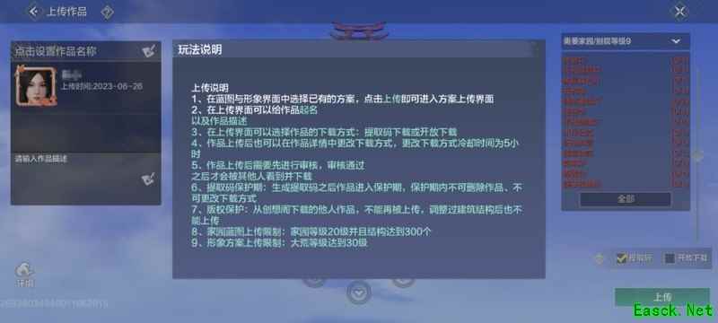 妄想山海创想阁新手指南来袭!创想阁作为游戏内的玩家原创作品分享平台,现正火热测试中。本文将详细介绍创想阁的基础功能、下载与上传操作,助你快速上手,畅享家园蓝图与角色形象设计的无限创意! 创想阁经过多轮调试即将重启测试,以下是使用教程! 基础功能设定与设计原理概述 创想阁是游戏内专为玩家打造的创意分享平台,旅者可以在此展示自己设计的家园蓝图与角色形象,同时也能浏览、下载、点赞或收藏其他玩家的精彩作品。进入方式:点击主界面右上角功能按钮中的外观栏,选择创想阁即可进入;也可在蓝图或角色形象界面中点击下载进入该平台。 创想阁致力于打造一个便捷分享、激发创意的平台,同时高度重视原创作品的保护。关于创作者权益的更多内容,欢迎查看我们将不遗余力地守护原创!一文。 创想阁目前仍在公开测试阶段,具体使用效果还需进一步观察。我们将持续关注其反馈情况,欢迎各位旅者积极上传、下载内容,并提出宝贵意见。测试期间可能会有不定期关闭的情况,敬请理解与支持! 第二部分功能使用教学——下载内容 创想阁的作品下载没有任何限制,新手用户也可以根据自身需求选择一些门槛较低的作品进行尝试使用。 ○ 创想阁入口 如何筛选 创想阁包含家园和角色两个板块,支持按综合排序、最新发布、点赞最多、下载最多、开放下载及提取码下载等方式筛选内容,角色部分还可依据种族进行筛选。 不同类别的筛选方式可以叠加使用,例如按最新发表排序、选择开放下载、指定人种族群等,合理利用筛选功能能让旅者更快速精准地找到喜爱的作品。 ○ 种族筛选 定向搜索 旅者可以搜索作品名称或输入提取码查找对应作品。名称搜索支持模糊匹配,例如输入家,即可快速找到所有包含家字的作品。 下载作品 开放作品可直接下载,非开放作品则需输入作者生成的提取码进行验证。每个提取码为一次性数据串,仅限一位玩家使用。作品页面会显示作者所在区服名称,方便玩家寻找本服的设计高手。 ○ 作品界面 使用作品 下载的家园作品将自动存入家园蓝图,若蓝图已满则无法继续下载。可在合适位置直接点击蓝图界面中的使用。蓝图功能后续也将支持别院使用,敬请期待! 角色形象下载后将自动保存至形象方案中,若方案已满则无法继续下载。在方案界面选择所需方案后,点击下载,随后点击左侧方案栏右上角的关闭按钮返回上级界面,即可对形象方案进行修改或使用。 建议旅行者遇到喜欢的作品及时收藏,这样在蓝图或方案已满时,可先删除部分作品,待需要时再重新下载。 ○ 形象方案 第三部分功能使用教程——上传方法 如何上传 旅者在创想阁下载作品无需限制,但建议先在预览界面查看作品所需家园等级、建材和结构数量等信息,选择适合自己的作品再下载。为减轻服务器压力,上传作品需满足一定条件,具体要求请留意相关提示。 家园建造类作品上传权限限制为:需家园等级达到20级及以上,且基础结构数量超过300个。所有玩家均可使用下载功能体验他人作品。 角色形象上传功能仅限30级及以上玩家使用,其他玩家仍可正常下载体验。 ○ 上传说明 在蓝图或形象界面选中设计好的作品,点击上传按钮,即可跳转至上传设置界面进行操作。 旅者可以为自己的作品取一个富有创意的名称,并添加相关描述,与热爱建筑设计和形象设计的朋友们在线分享与交流设计灵感与心得。 默认上传采用提取码方式,如希望更多人下载体验作品,可切换为开放模式。开放模式下他人可免费下载,但不得将作品再次上传至平台。 在上传界面,旅者可以调整蓝图或角色形象的位置、朝向、大小以及展示环境。确认调整后,再次点击上传,当前画面将被保存为作品封面。选择一个最佳角度,展现作品最精彩的一面,或许还能吸引更多目光! ○ 封面设置 私密分享,生成专属提取码 如果旅行者希望仅与特定对象分享设计内容,可在作品审核通过后,进入页面,找到相应作品,点击左下方生成提取码,复制提取码发送给对方即可实现分享。 怎样让作品排名更靠前? 点赞和下载数量会影响作品的排序权重,若旅者希望作品排名更靠前,可从提升互动数据入手。此外,在作品名称中加入热门关键词也有助于增加曝光机会,吸引更多用户浏览,从而进一步提升点赞、下载和收藏的可能性。 上传作品查阅 创想阁现已开启测试,欢迎各位旅者前来体验。测试期间,如有宝贵意见或建议,也欢迎大家积极反馈,共同完善这个创意空间。 |