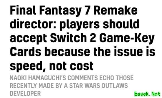 《FF7RE》总监回应NS2钥匙卡争议 玩家应该接受变化