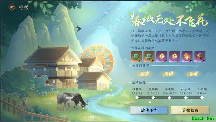 同时,名园评选活动也正式拉开帷幕。庄园建筑师们,展现才华与创意的舞台来了!以“春城无处不飞花”为主题,构建独具一格的庄园参赛,便有机会赢得10000纹玉、顶级限时称号、专属主页历史荣誉等奖励。不止是设计庄园,各位同门参与投票为你喜欢的庄园作品加油助威,同样有机会获得纹玉、资材箱等奖励。