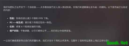 游戏自发售以来,官方已陆续发布多次小更新。最近的补丁主要解决了“室内下雨”和“昼夜循环紊乱”的问题。 此外官方表示正在着手优化以下内容,将于下周推送补丁: 持续改进性能以减少卡顿和FPS下降; 优化PC帧生成在高负载下提升稳定性与一致性; 修复4个影响任务推进的问题; 对于丧尸意外变身六道佩恩、抓人如磁铁的平衡性调整。