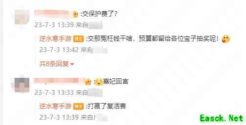 而在今日解封后,《逆水寒》手游没有正面回应此前的事件,但通过各种玩梗也与玩家开始了热情互动:“不交冤枉钱,预算留着钱给粉丝抽奖”“打赢了复活赛”...可以看出《逆水寒》手游官博仍旧保持着原先的态度。