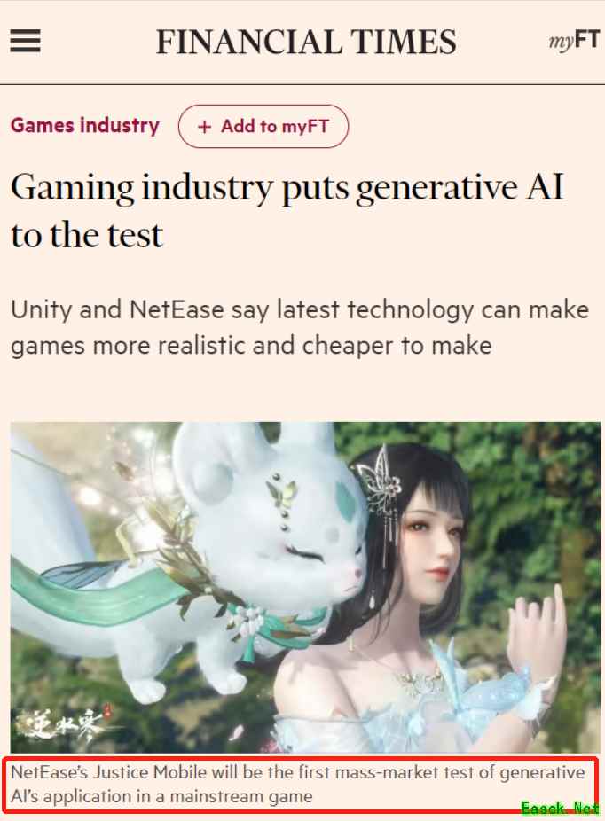 《华尔街日报》《金融时报》等国外主流媒体都对《逆水寒》手游的AI运用做了正面报道,其中《金融时报》也认识到“网易的《逆水寒》手游会是第一个在主流游戏运用AI进行大规模市场测试。”在AI技术在游戏领域的创新运用方面,国产游戏确实走在了最前列。
